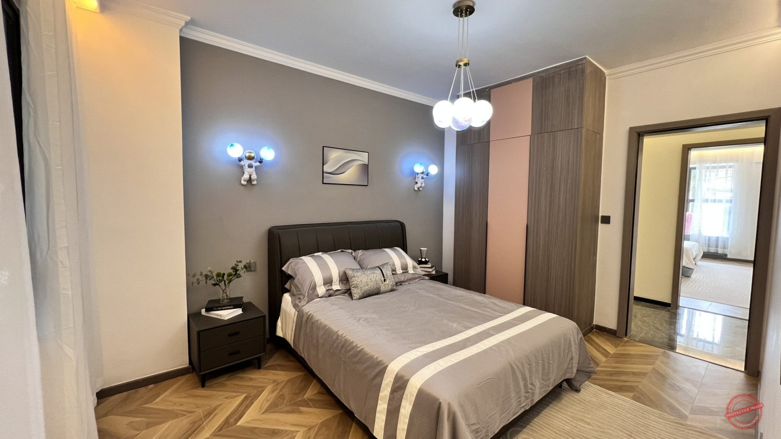 The modern and simple kitchen is well equipped, functional partition is scientific and reasonable, sufficient lighting and more luxurious as is greatly shown. The bedroom has a very airy feel and a wide vision view of The Nairobi Arboretum.