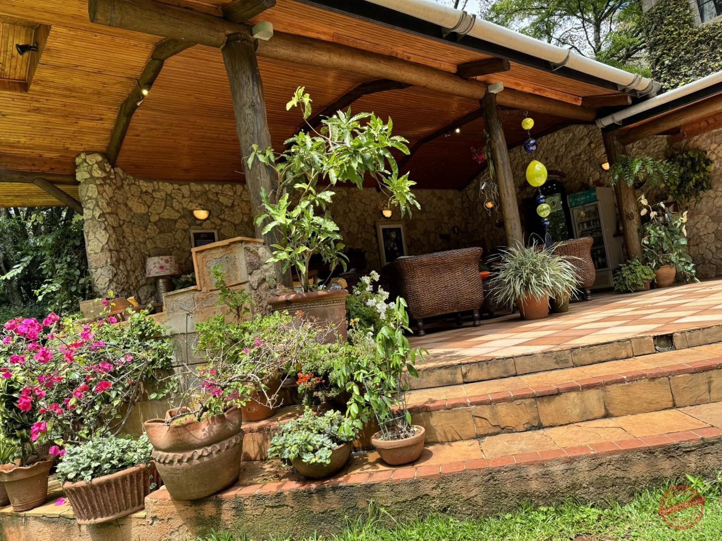 - Expansive veranda with a large fireplace