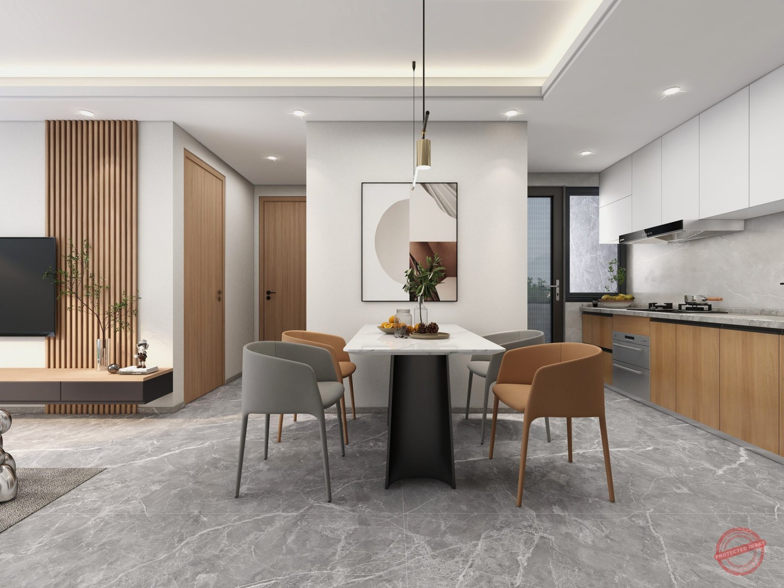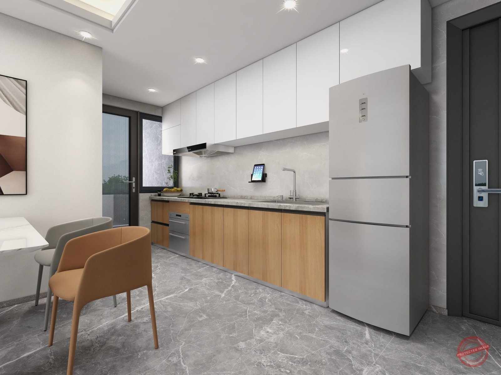 Semi-open modern kitchen, spacious lounge enjoys breezy balcony access.