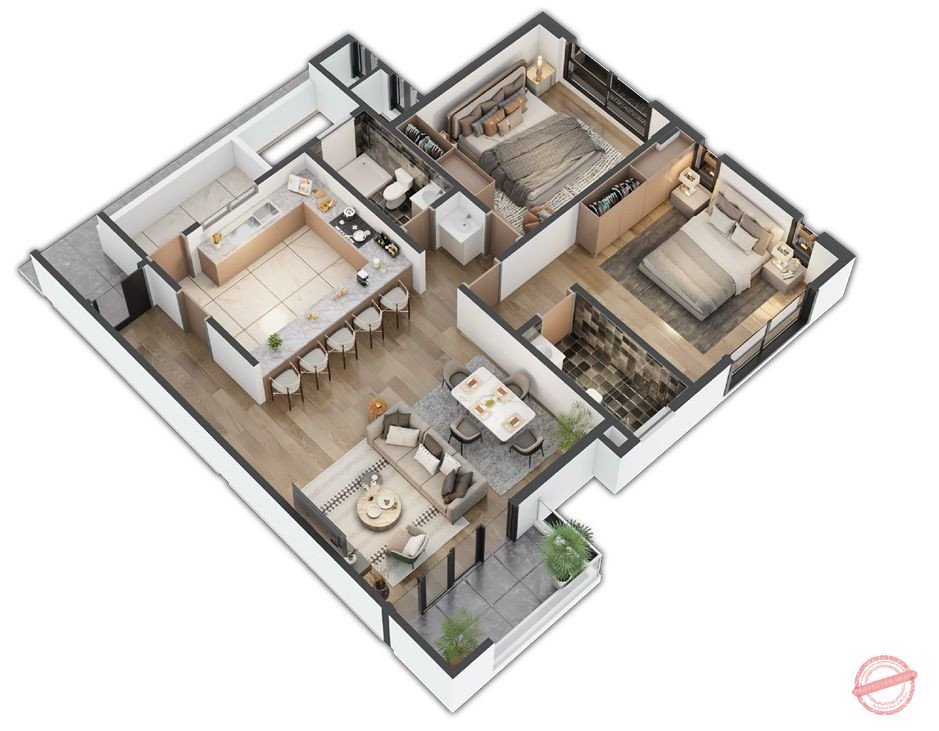 • 2 Bedroom Apartments (Master En-Suite) – 1,292 Sq. Ft. / 120 Sq. M